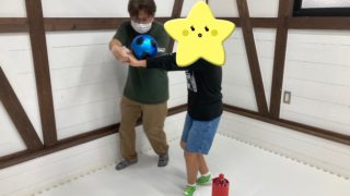 初日の今日は、職員やお友達同士で両手を使ってボール運びをしよう、というゲームです。