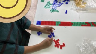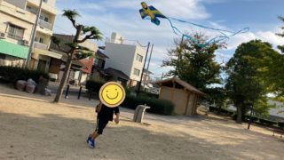 今日は近くにあるいつもとは違う公園に行きました。公園にある遊具だけではなく懐かしいケンケンパの遊びをしています。