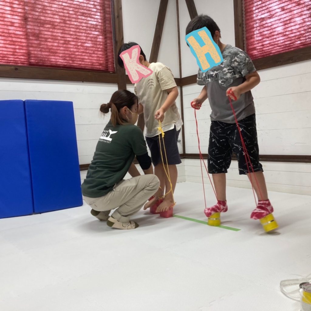 本日の集団活動は、「缶ぽっくり」を行いました。