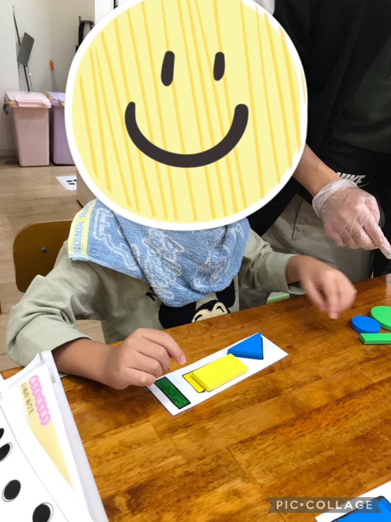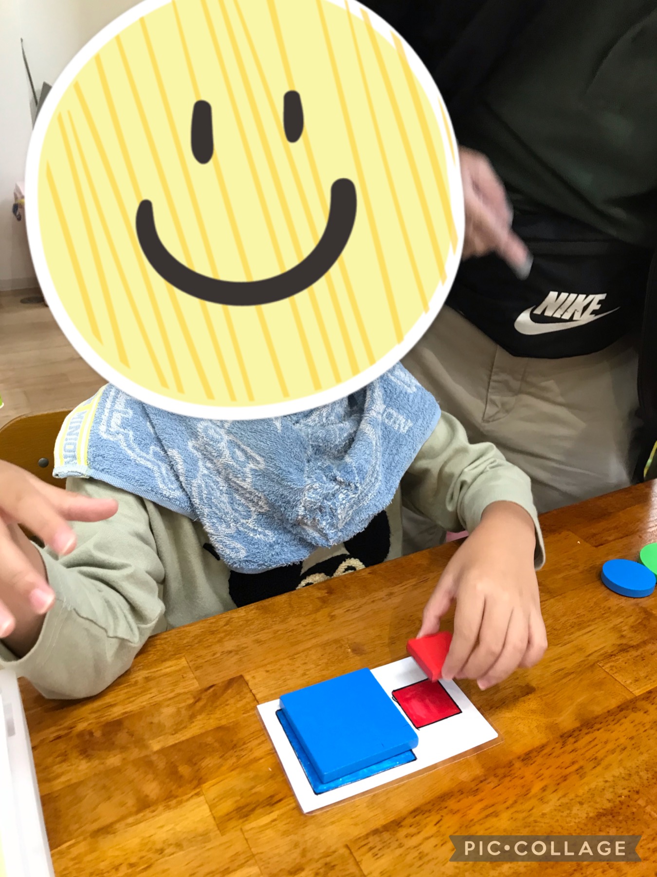 【今治北クラス】本日のできごと今日は新しくきたブロックで型合わせに挑戦しました!絵をみながら同じ色、同じ型のブロックを探して型に合わせていきます!たくさんあるブロックの中から、試行錯誤しながら指先をたくさん使って探しました!集中して取り組み、実際に型に合わせることで図形の理解が深まりました!見事型にあった時には、お友達からも拍手をもらい達成感が得られました!