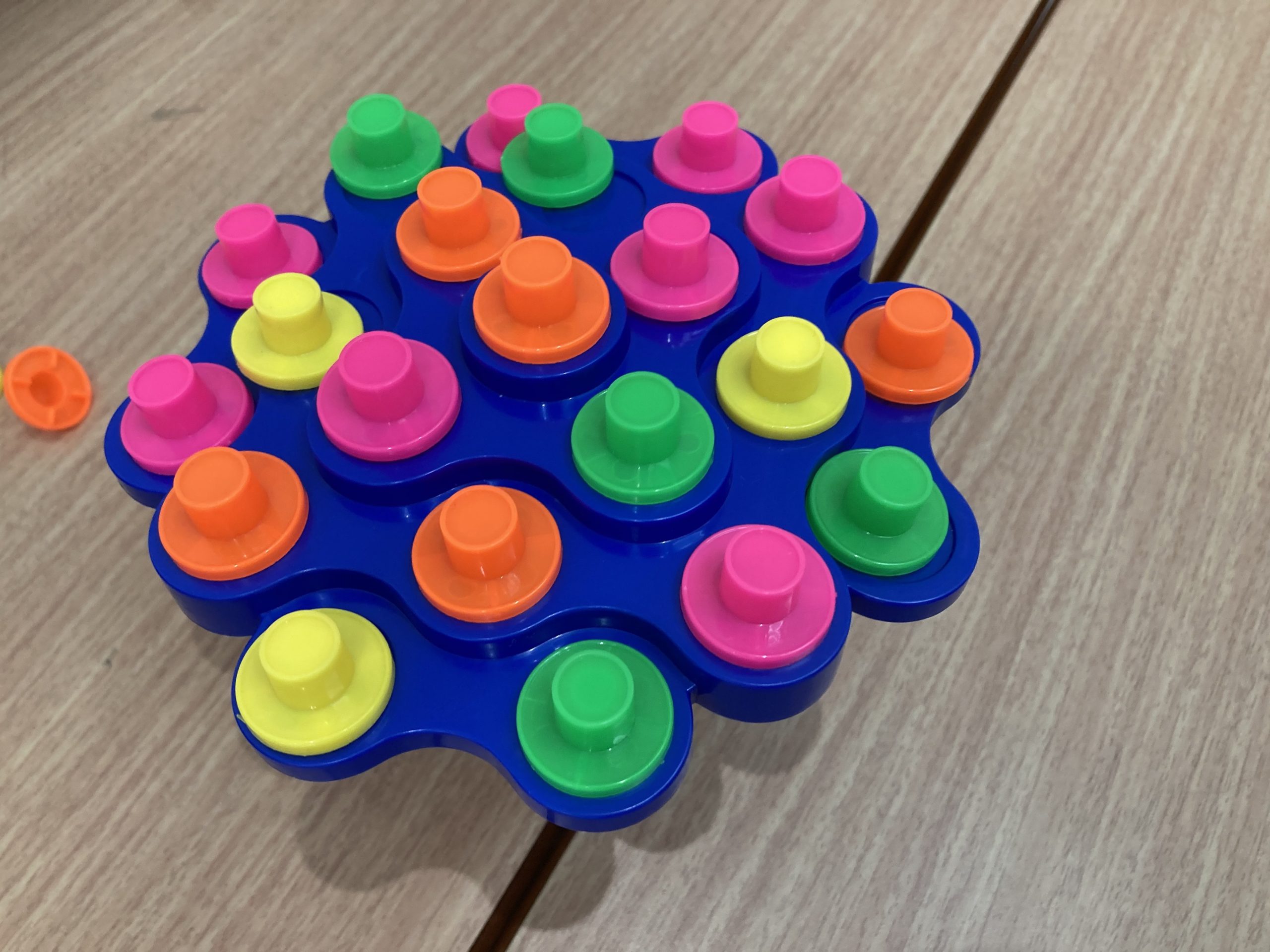 バランスツリー 【今治北クラス】本日のできごと 2021.04.07 サイコロの目のルールに従って、コマを置いていきます!揺れてしまうので、バランスを崩さないよう慎重にのせていきます!上手くバランスをとりながら全部のせ、「できたー」と職員に見せてくれました。