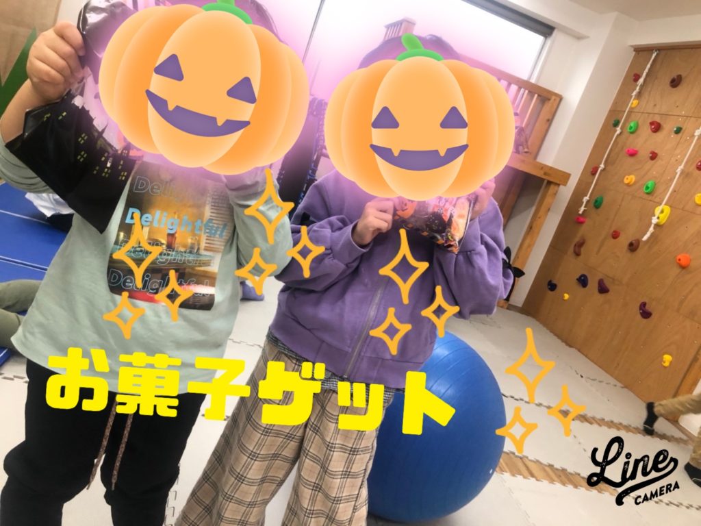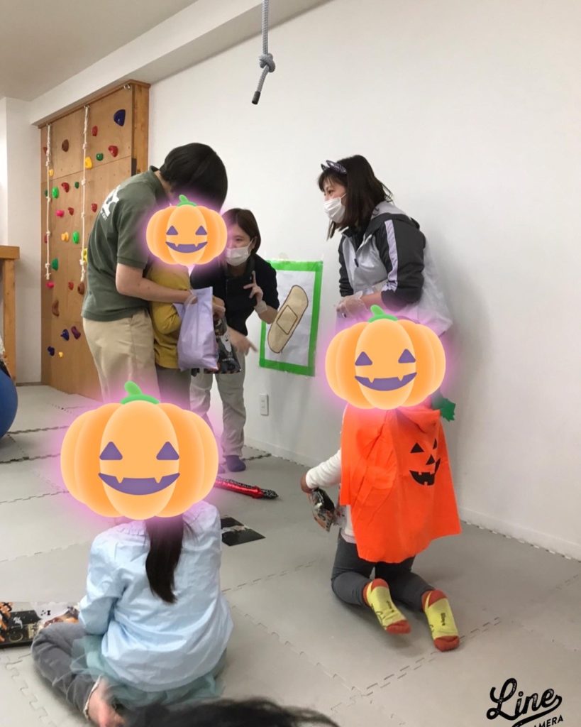 元気に先生のお名前を伝える事が出来、「お菓子をください」と伝えてくれています。お菓子を渡されると嬉しそうな笑顔が見られていました。
