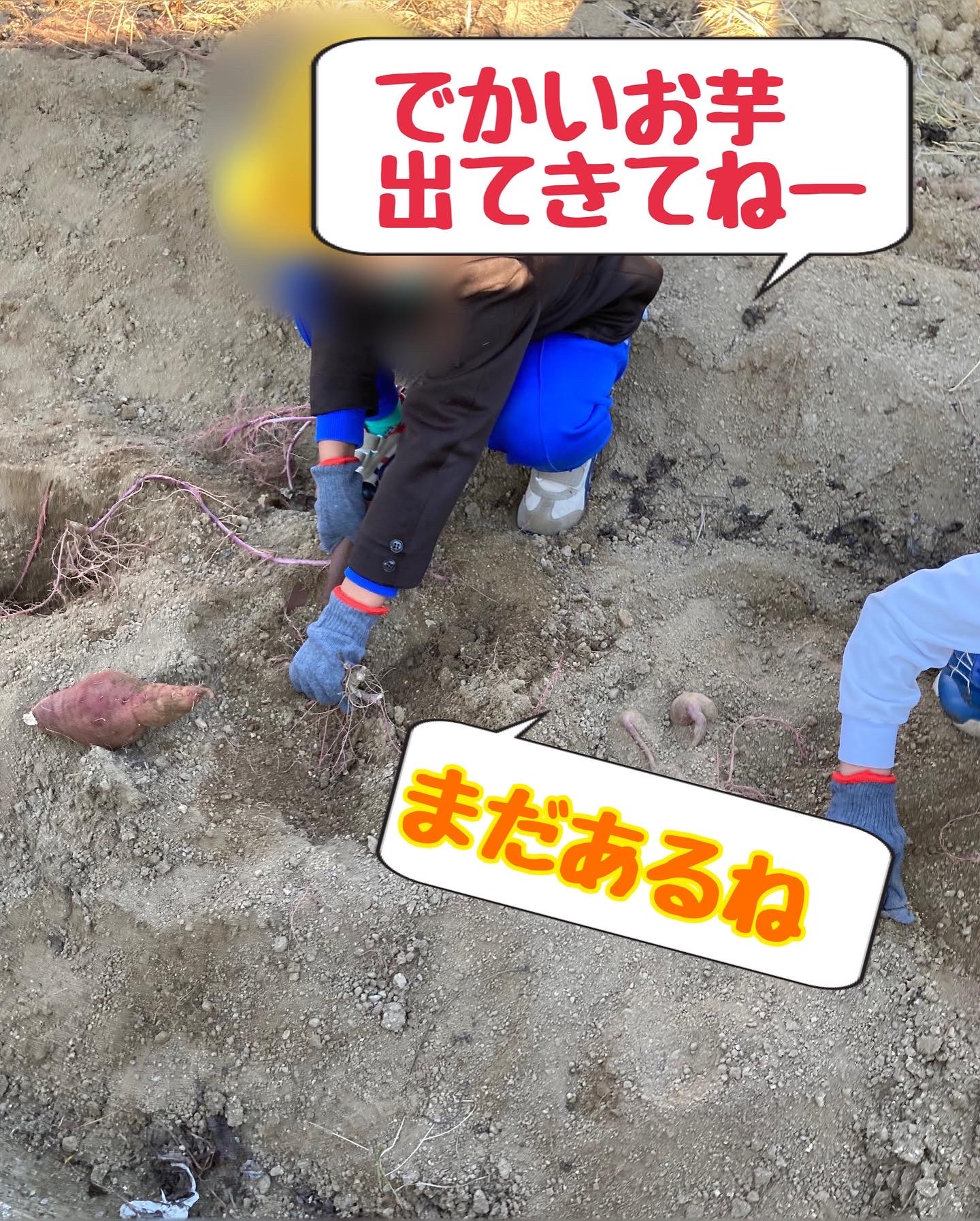 こどもの大好きな遊びのひとつに、泥んこ遊びがありますが、最近は泥んこや土に触れる機会も場所もなかなかありません。しかし、今日は畑の一角ながら土に触れることができました。土の中からさつまいもが次々に出てくる不思議。まるで宝を探すように目✨👀✨を輝かせて掘り返しています。