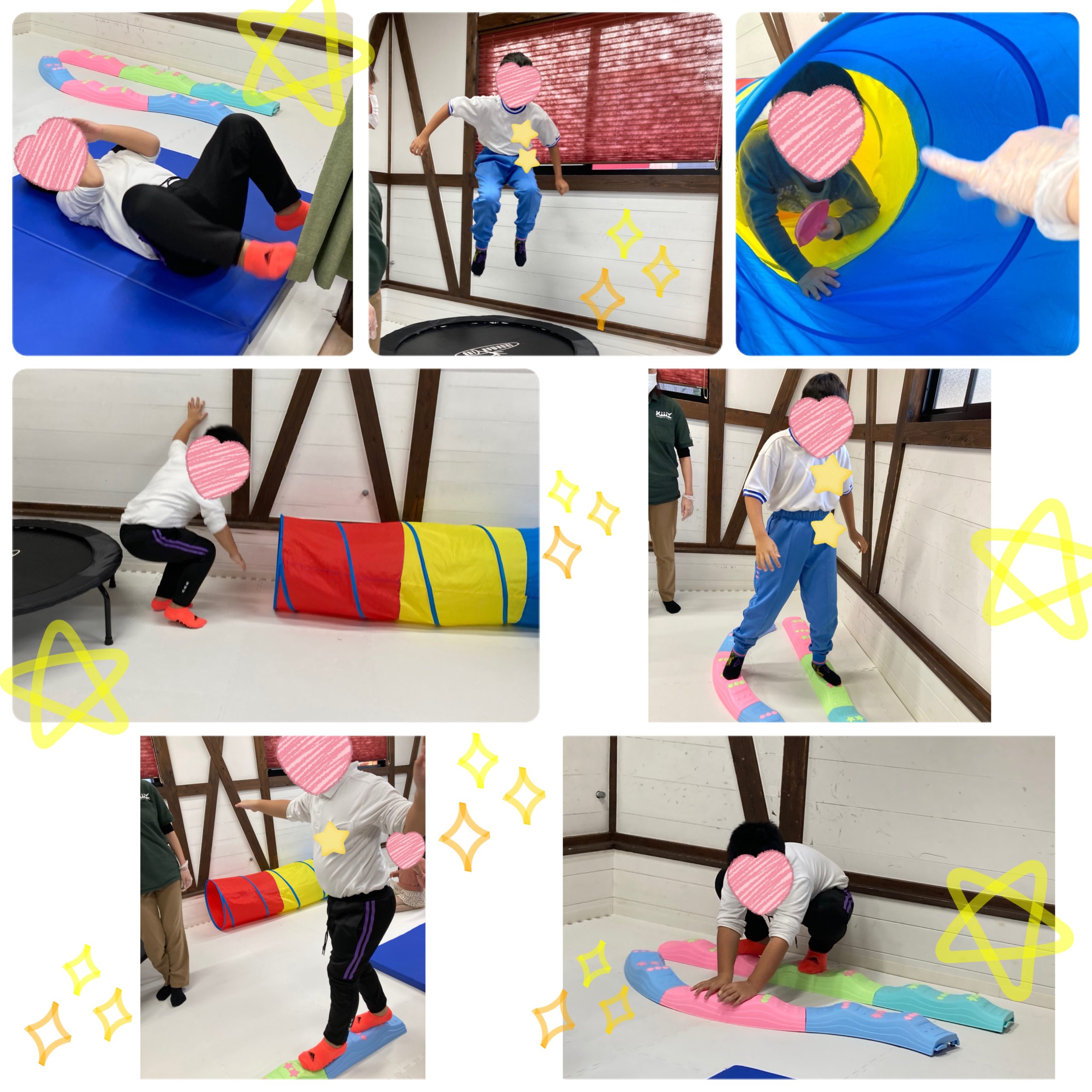 バランスボードを用いて、他トランポリン・トンネル・マットを使って体を動かしました🏃💨
