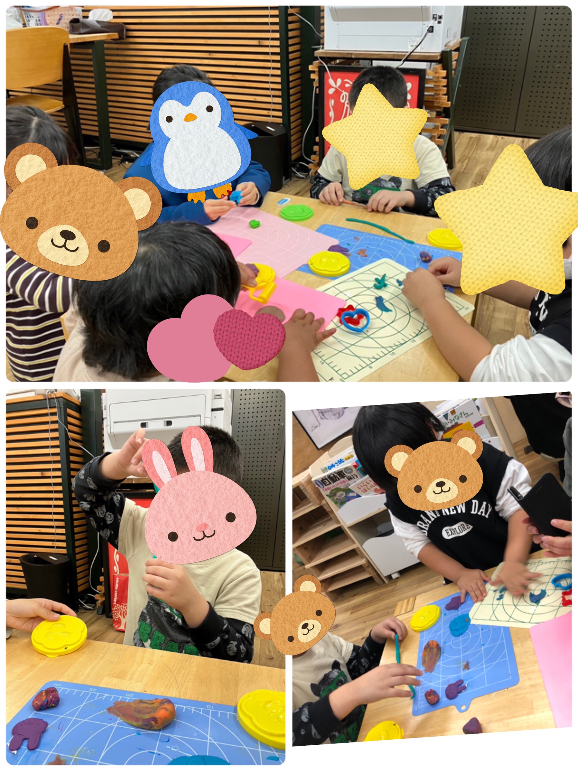 【朝生田クラス】本日のできごとちゃぶ台に集まり、粘土遊びをしました♩