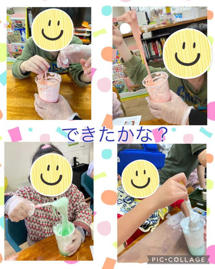 みんな伸びるスライム作りを楽しんでくれました🍀