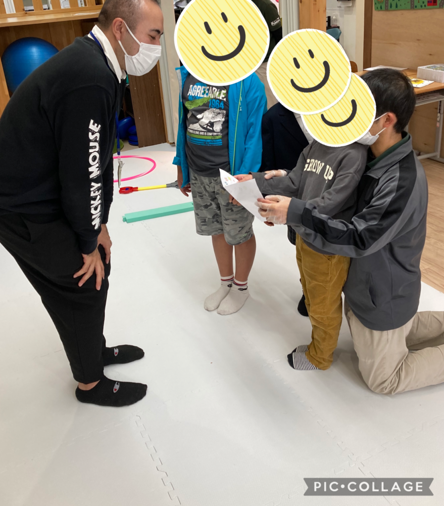 最後は児童が英語で職員と一緒にお礼の手紙を書いて渡しました♪