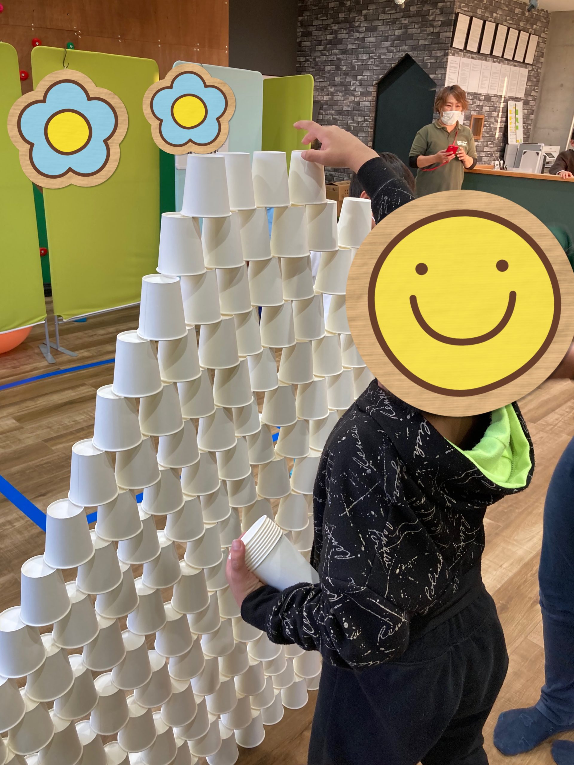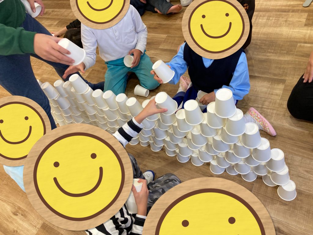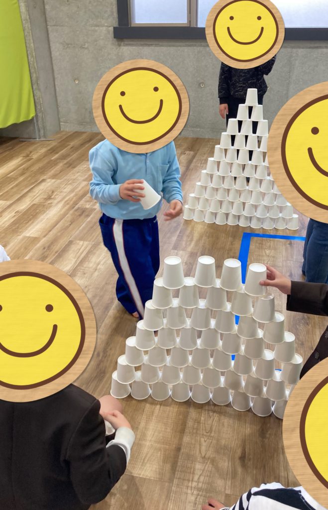 チーム3人が協力し合って、そーっと慎重に、そして素早く紙コップを置いて行くことが出来ていました😊