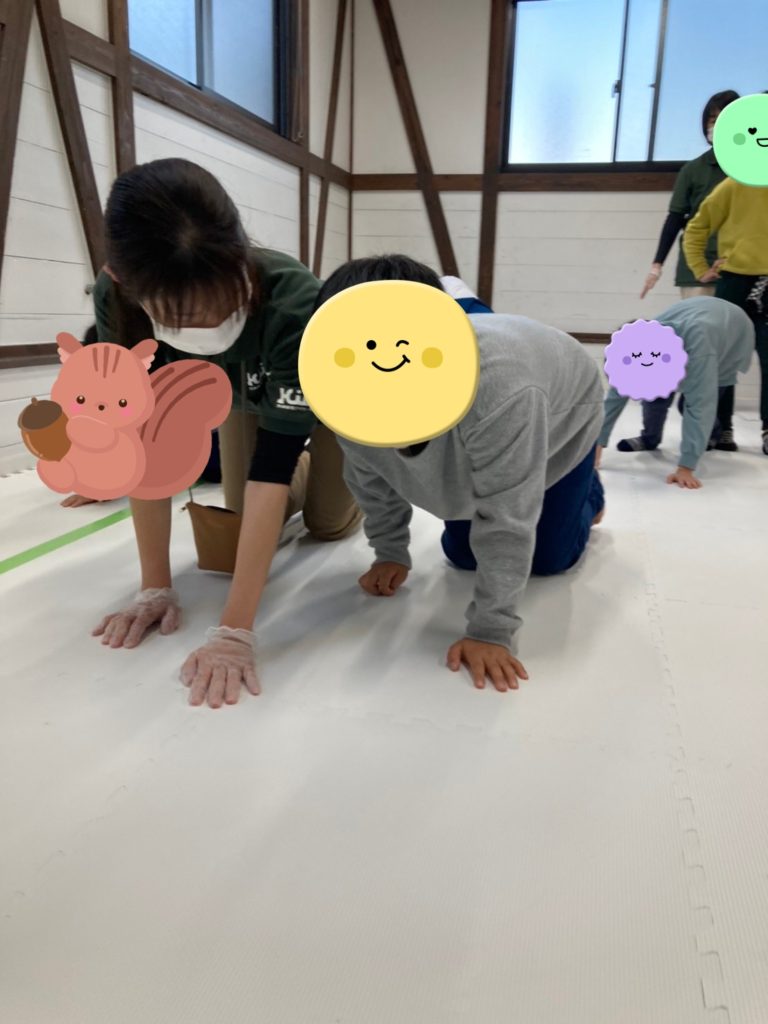 この活動では、実際に動物のイラストを見て「この動物(くま)(カエル)はこんな歩き方かな?」とこども達の想像する力を養うことができます😊