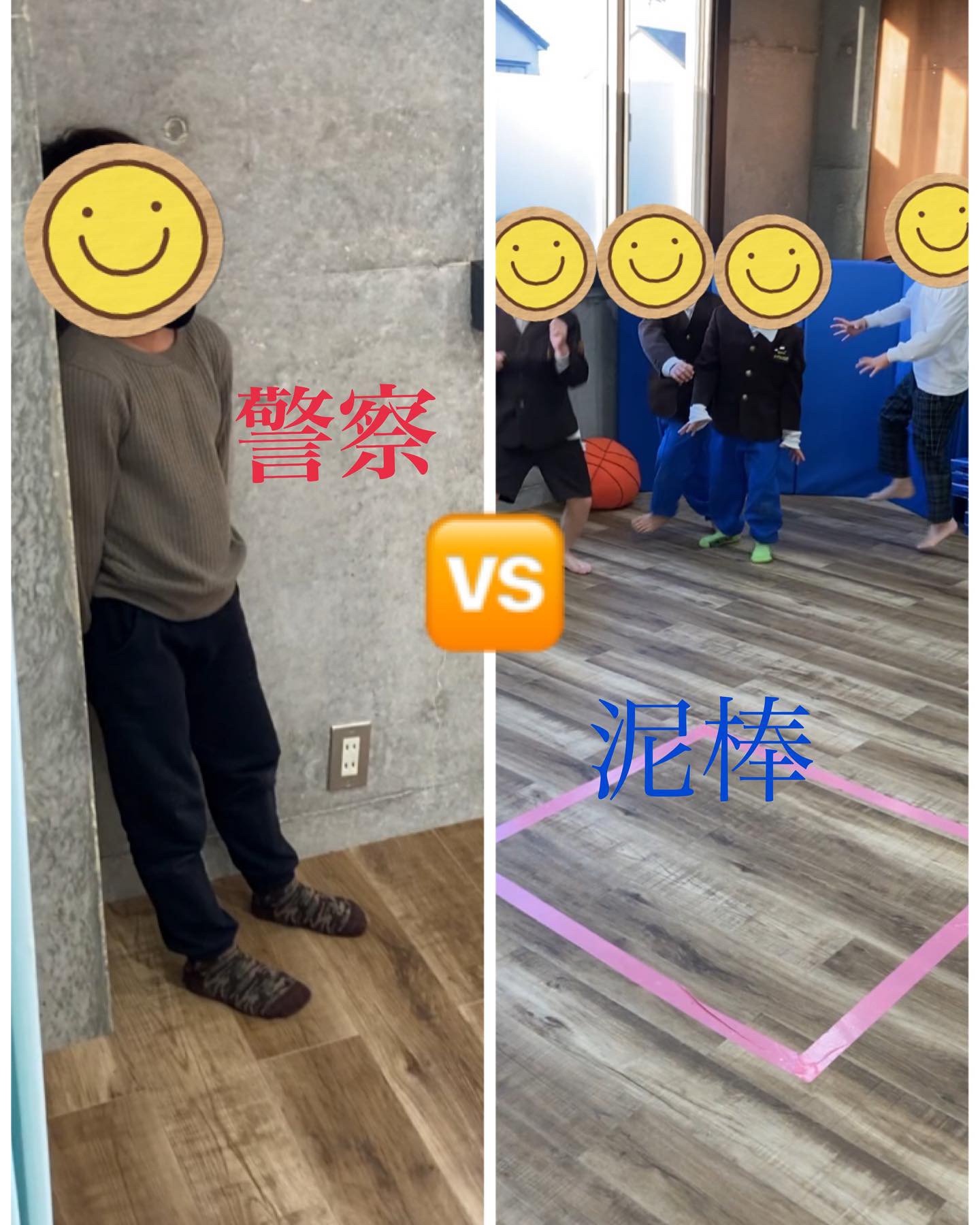 ルールは警察役が泥棒役の児童を全員捕まえれば勝ち!泥棒役は一人でも逃げ切れば勝ちとなります!また、泥棒役は警察にタッチされ牢屋スペースに入っても、逃げている味方の泥棒がタッチしてくれると復活することができます!
