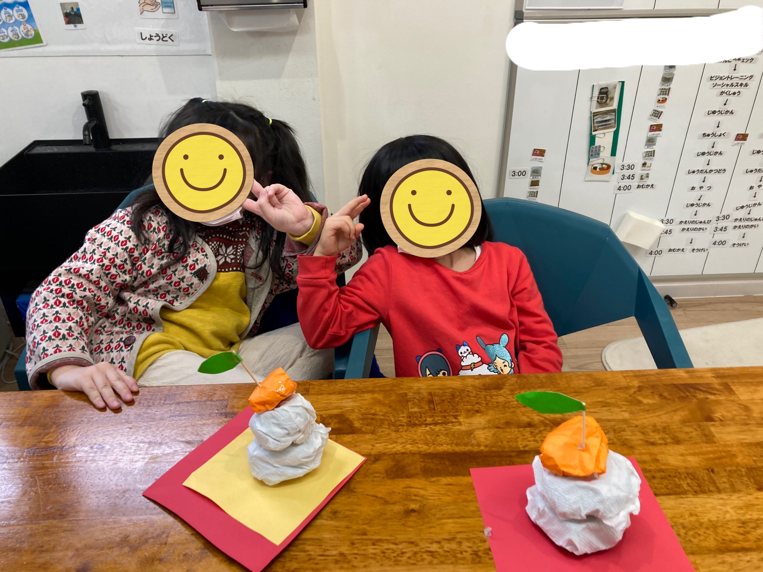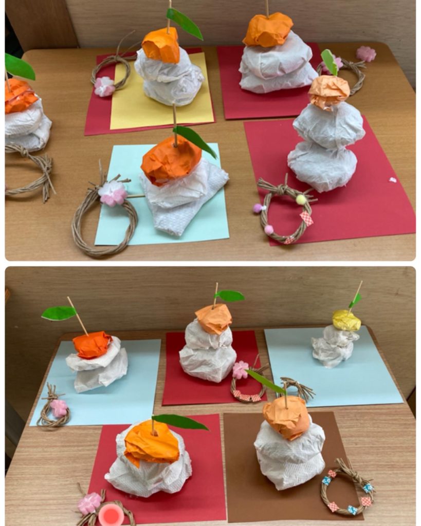 本日は季節の行事に親しもうということで『しめ飾り•鏡餅』の工作をしました。