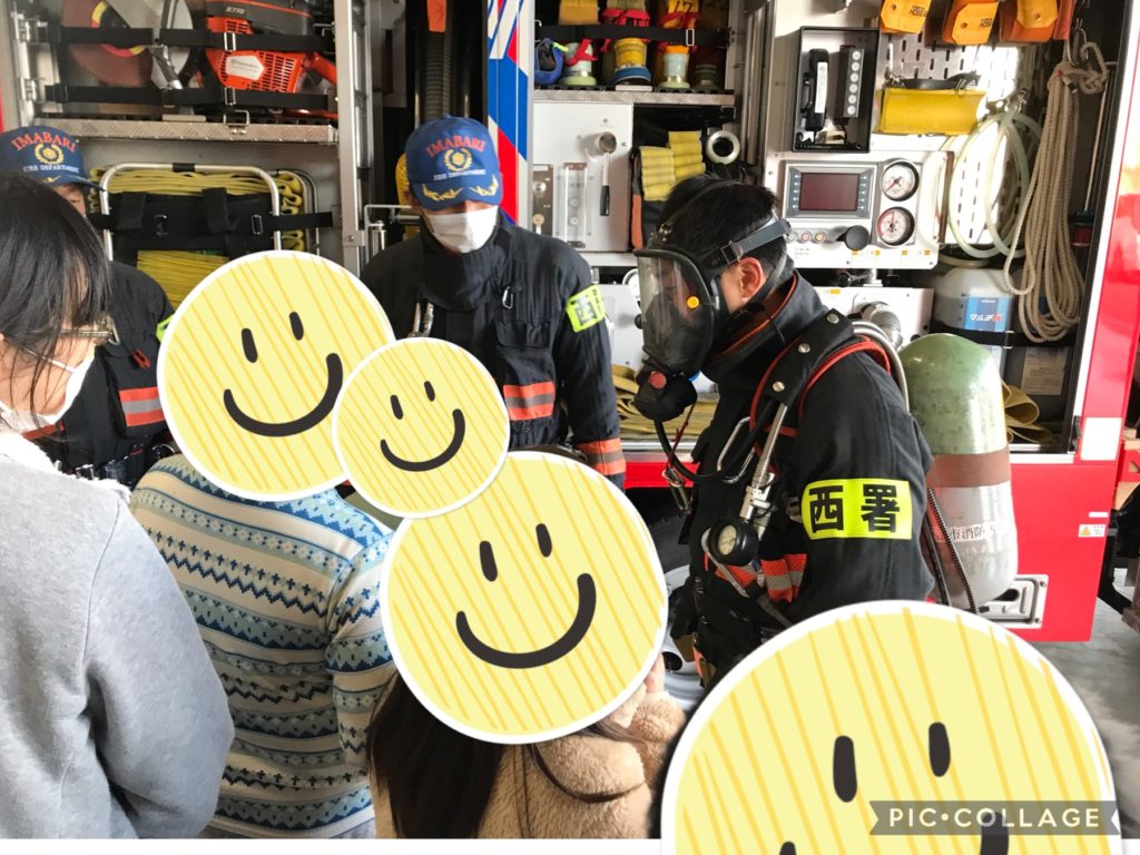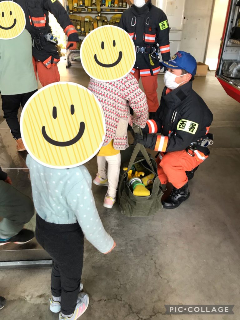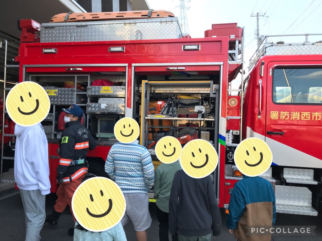 【今治北クラス】本日のできごと今日はみんなで消防署見学に行きました!最初は消火器の使い方を確認しながら、実際に水の入った消火器を使って火を消す練習をしました!しっかりとホースを持って、的を狙って的を倒すことが出来ました!