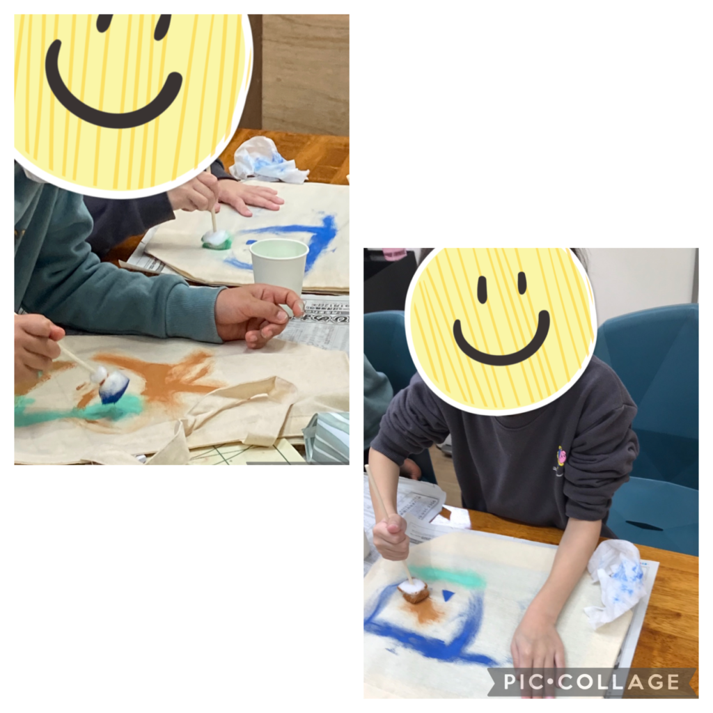 それぞれがオリジナルの模様をトートバッグに付けることができました♪