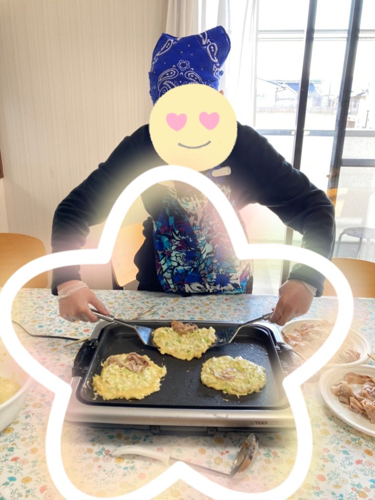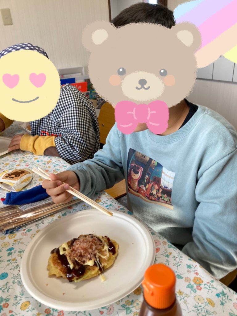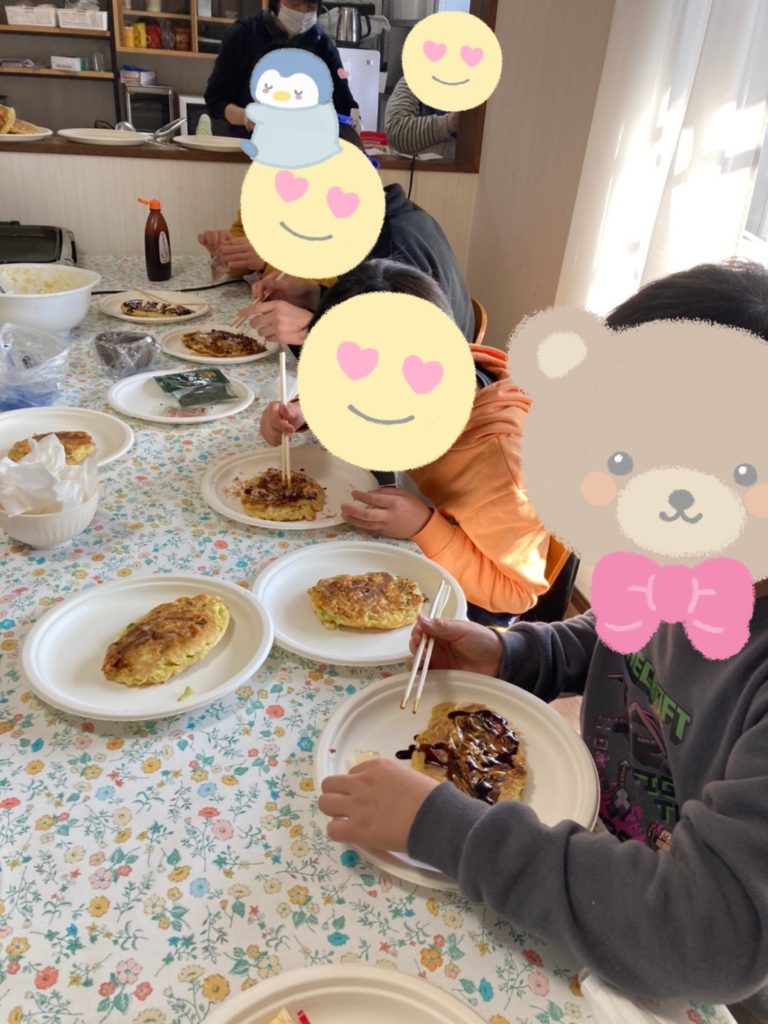 本日はお昼ごはんの時間にみんなで『お好み焼き』を作りました🍳‼️