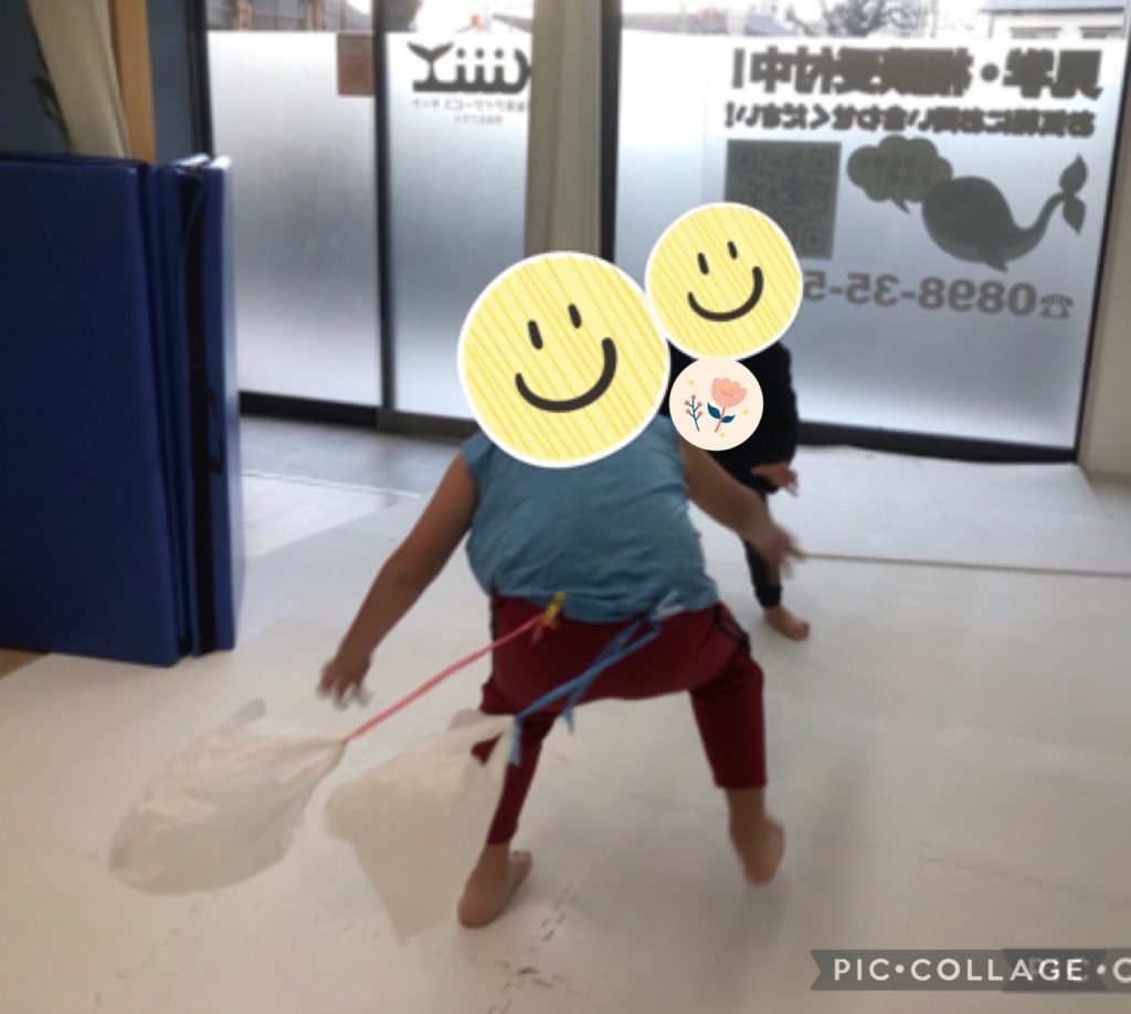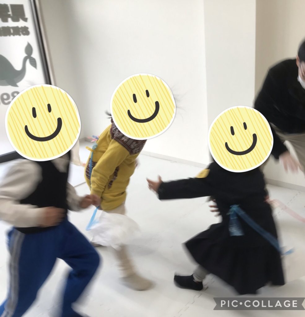 今日はしっぽ取りゲーム第2弾をしました!前回はしっぽ1本でしたが、今日は2本でやりました!最初にルールや気を付けることを確認しました!前回しっぽ取りに参加されていた児童からは、覚えていたルールを発表したり、今日初めて参加をする児童からも気を付けることを発表してみんなで確認をしながらゲームに移ることができています!相手の動きを見つつ、自分のしっぽにも注意して取りに行きました!今日は2本あるのでチャンスも増えますが守る所も増えるので、より慎重になりつつも積極的に攻めることができていました!取られて負けてしまった時には一瞬残念そうな表情になる時もありましたが、気持ちを切り替えて職員と一緒に応援をしたり、次のゲームに参加することができました!最後のゲームが終わった時には、みんなで握手をして「ありがとう!」と気持ちよく終わりました!