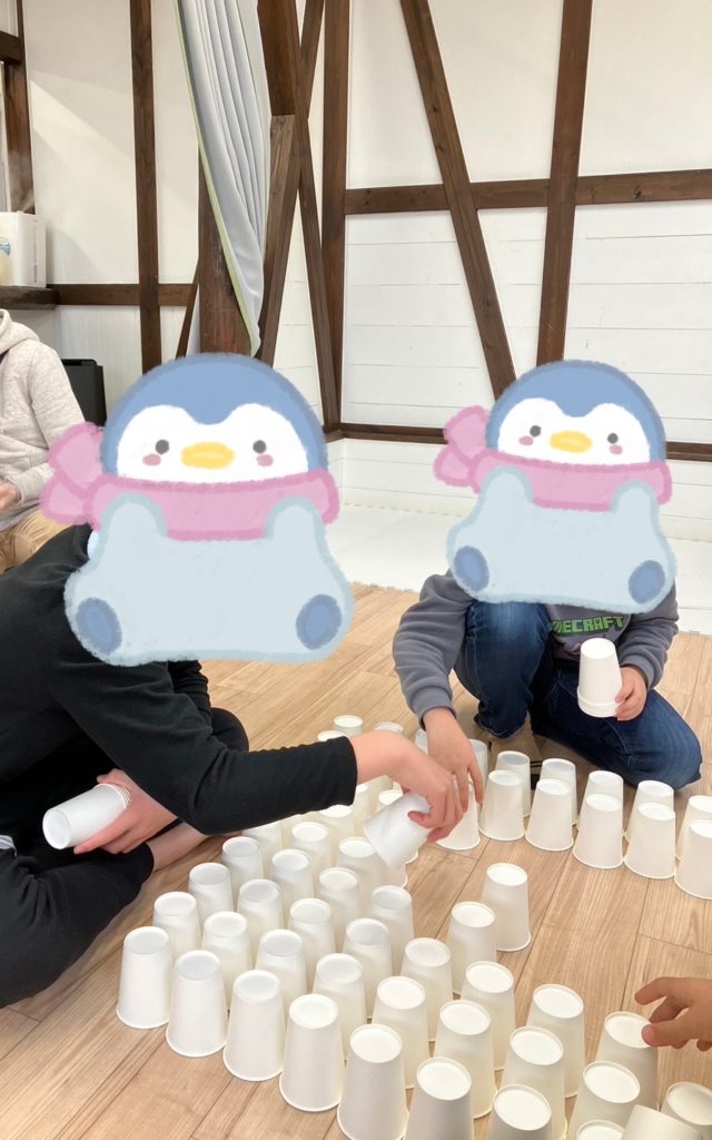 紙コップでタワーを作りました😃