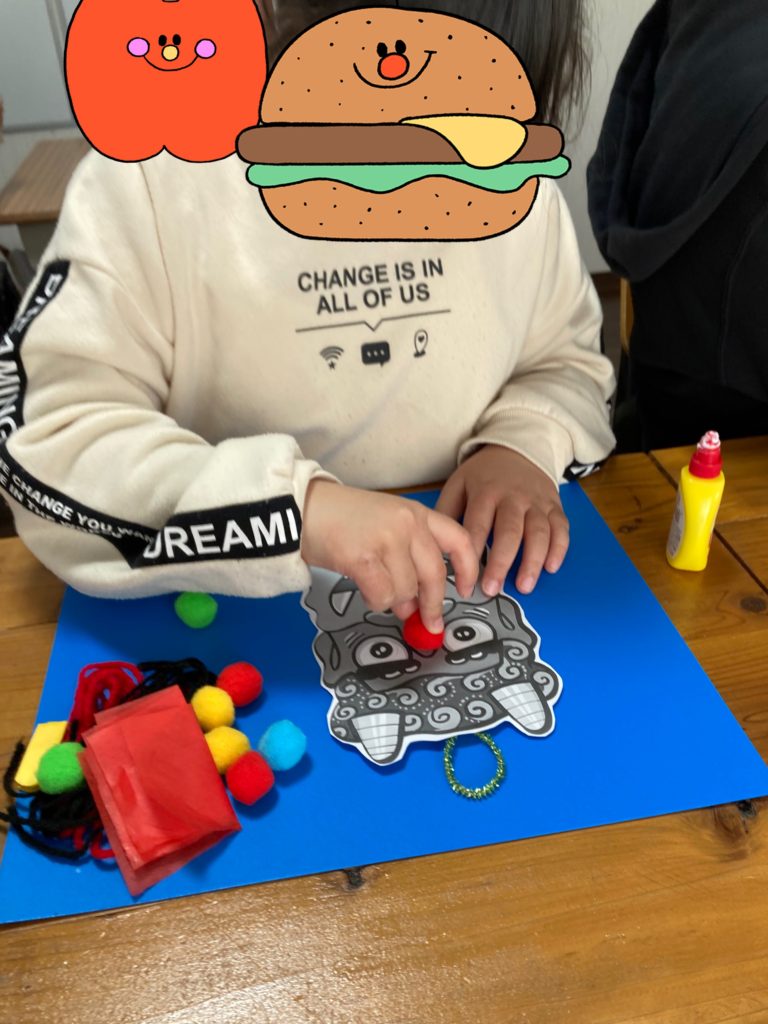 鼻をカラフルにしたり、顔の色で使う花紙を頬につけたりと個性溢れる鬼が仕上がっていました✊🏻❤️🔥