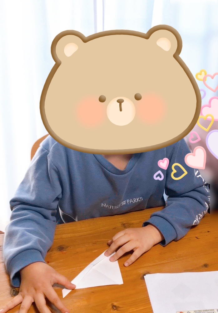 お友達の動きを見たり、先生と一緒に折ったり、ペンや色鉛筆で塗ったりして、作品を作っていました。