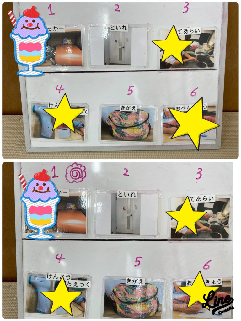 最近では来所して手作りの絵カードを見て予定をチェックします!