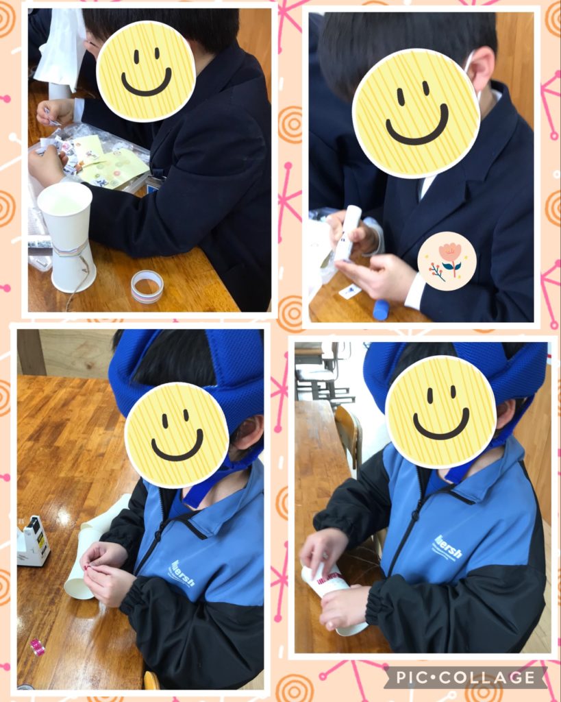 作品作り中、見本の紐の長さを見ながら「長すぎる気がする…」と紐の長さを迷っている児童がいました。普段から「俺、工作苦手なんよね…」と言いながらも工作のイベントに参加してくれている児童です。