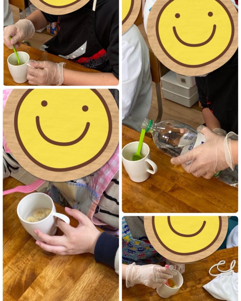 普段フルーツポンチが苦手な児童も好きな果物、好きなジュースを選べることでオリジナルのフルーツポンチを作ることができ『美味しーい』『カルピスに入ってるから食べれるよ』と笑顔で食べてくれている様子に職員も嬉しい気持ちになりました😊