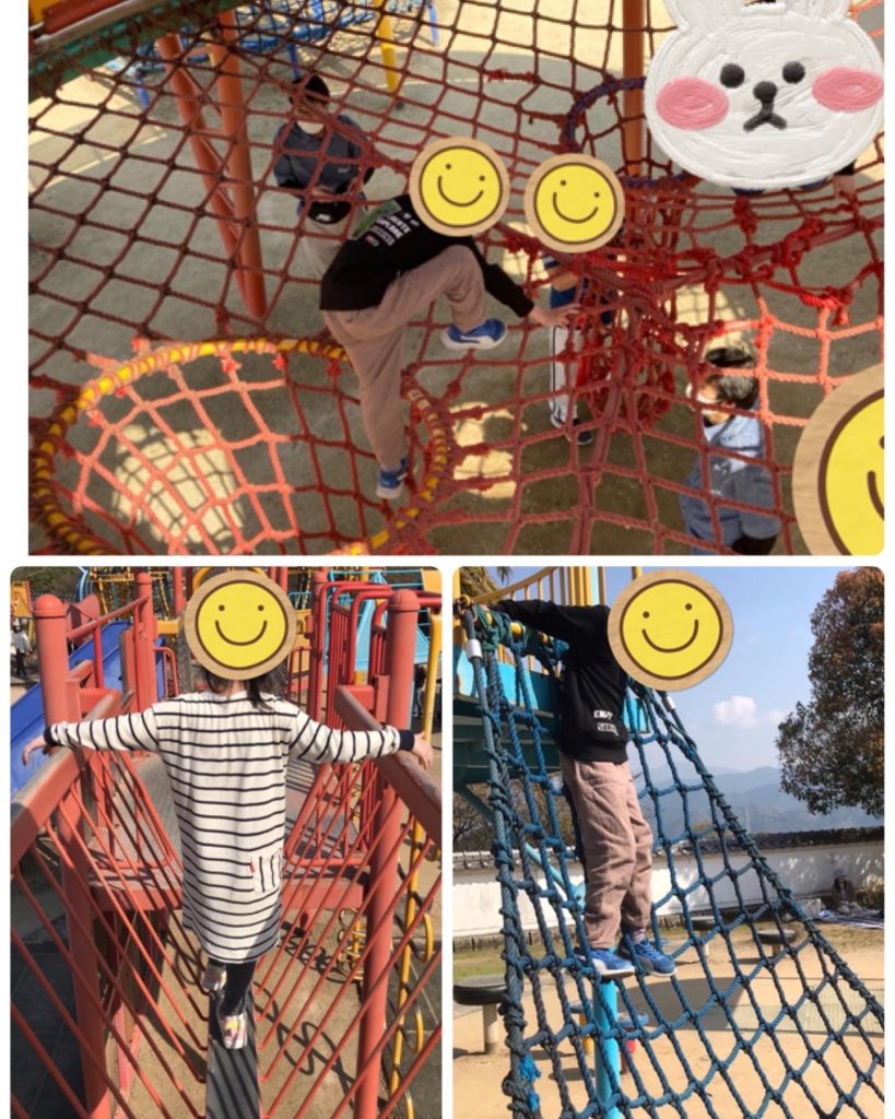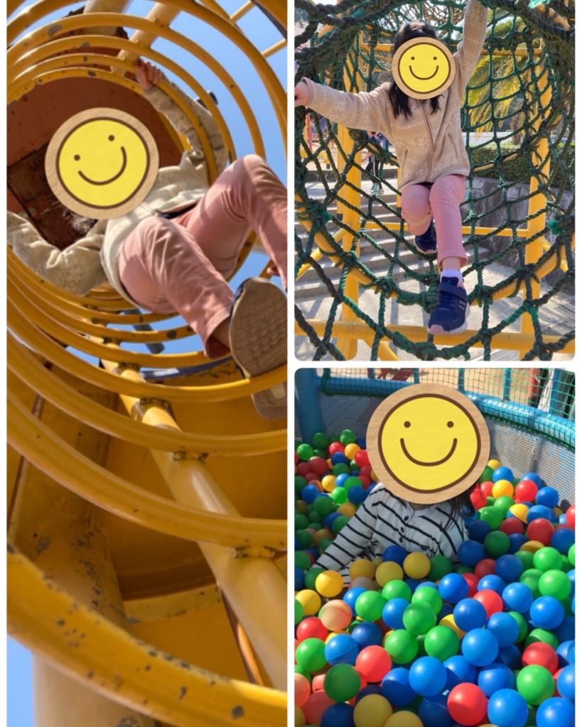 公園について巨大な遊具をみると『えー、遊園地みたい』『すごーい、あれで遊びたい!』と遊ぶ前からワクワクが止まらない様子でした。