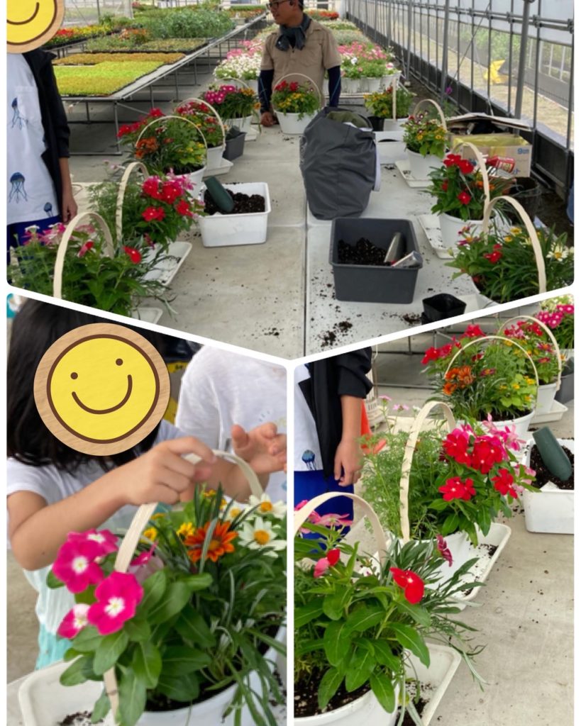 寄せ植え作業では花のバランスや色合いを考え「この色はこっちがいいかな?」と配置に試行錯誤している場面もありました。諦めることなく最後までやり遂げることで素敵な寄せ植えが完成しています。