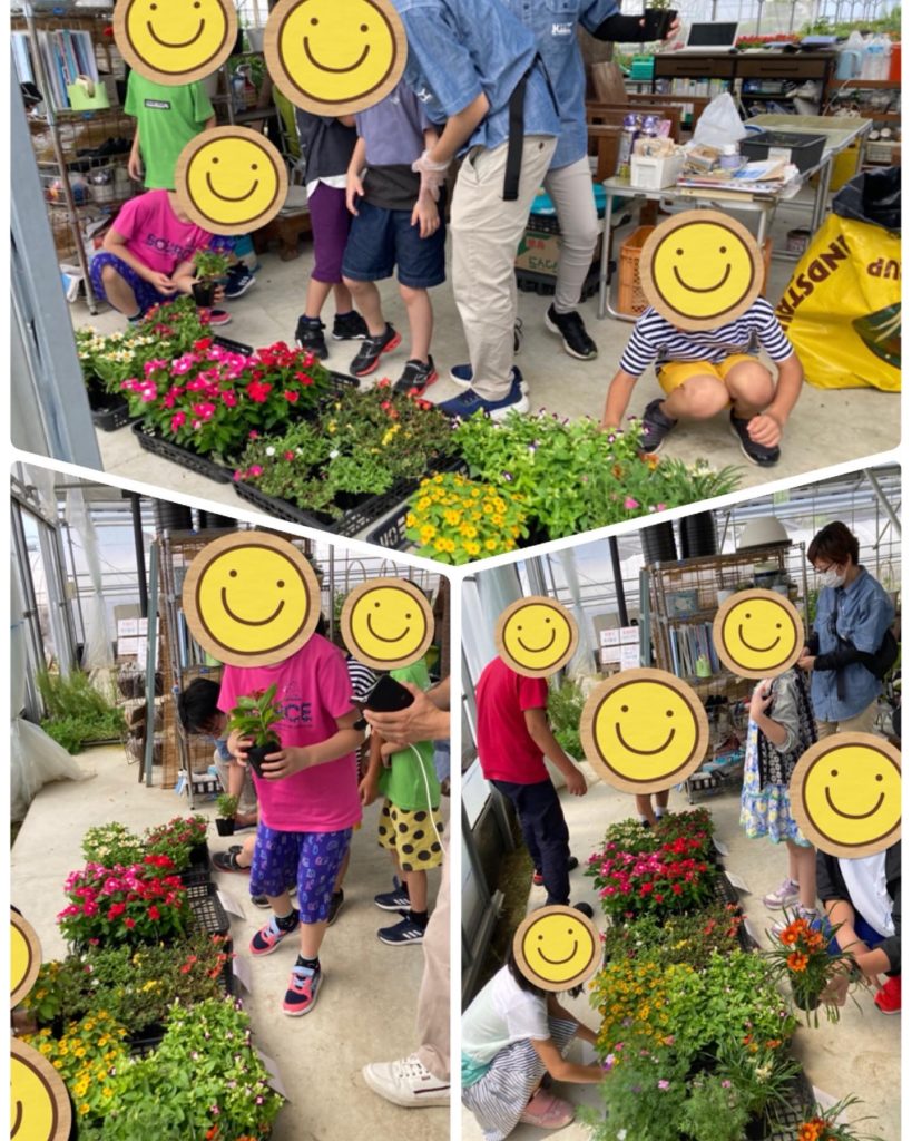 お邪魔しますと可愛らしい鉢を用意してくれており、花は数種類の中から好きなものを5種類選ばせてくれました。花の色、香り感じながら視覚と嗅覚で楽しみながら選びました。更に花びらが落ちないように優しく手に取る姿があり生命の大切さも自然と身に付いている様子でした。