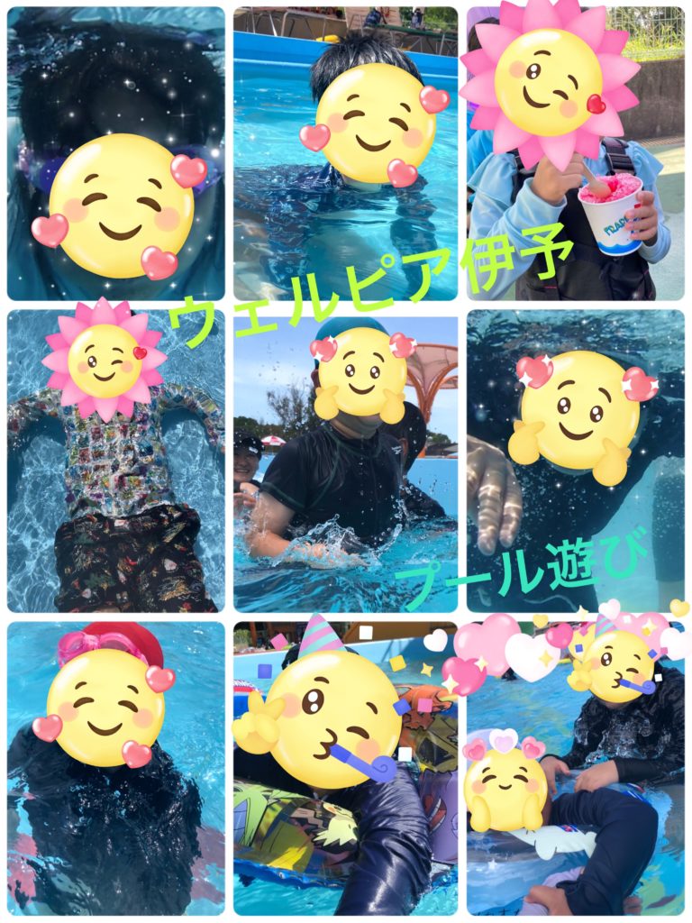 皆んなで「ウェルピア伊予」に行ってプール遊びをしています。