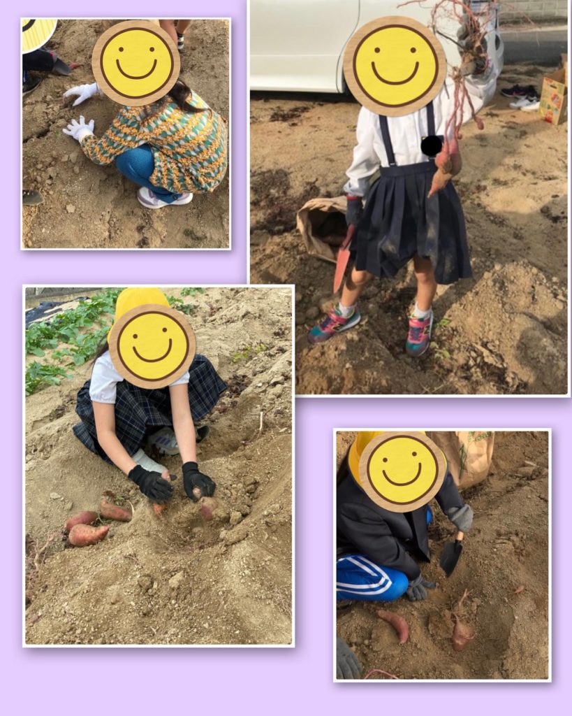 サツマイモを見つけると『あった!あった!』『ここにもある!』と宝探しのように楽しんでくれていました✨サツマイモが折れないように慎重に掘り進め、上手く掘れない時には「手伝って!」と助けを求めると「わかった。待っとってね」とお互いが協力し合う姿が見られました。みんなでたくさんのサツマイモを収穫することができました👏