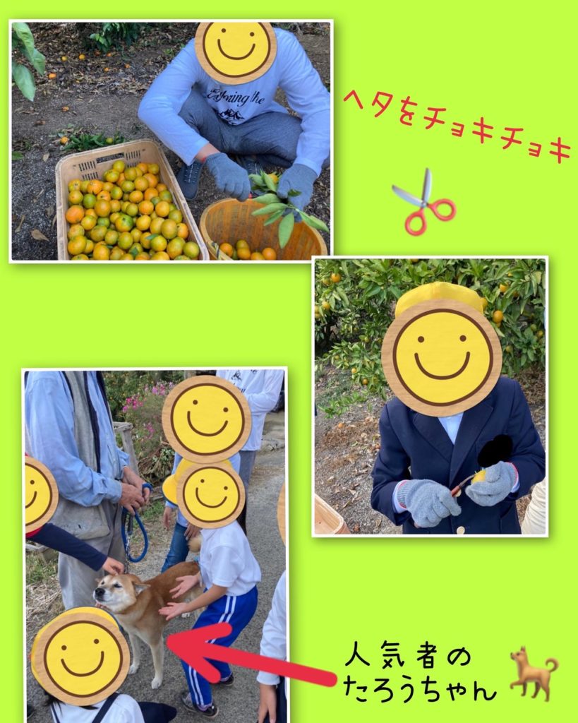 🐕みかん狩りをさせていただきましたお家には可愛い犬もおり、飼い主さんより触ってもいいと声を掛けていただきました。動物好きな児童は力加減、順番を守りながら動物とふれあう機会もいただきました。