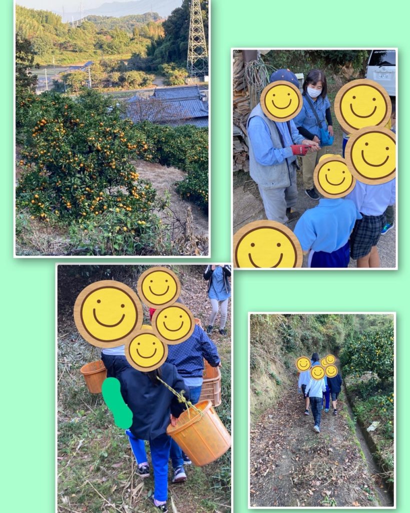 まず、みかんの摘み方について教えていただきました。ハサミを使って説明通りヘタのギリギリを切ってみんな上手に収穫してくれていました。みかん狩り初体験の児童は『めっちゃ楽しい。来てよかった』『もっと取りたい』と嬉しい声を聞くことができました😊
