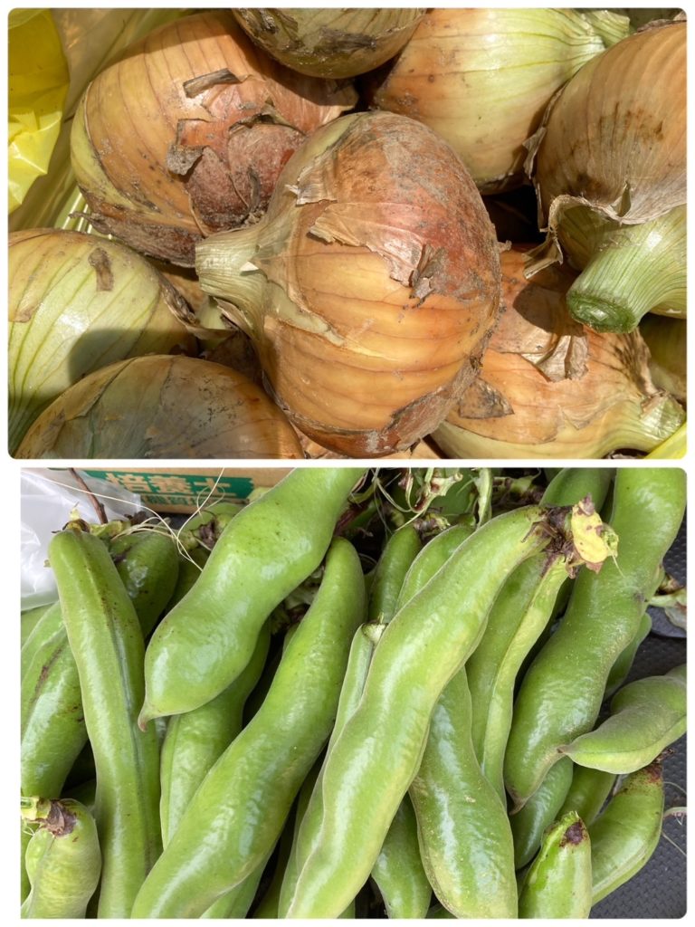 春野菜の収穫、昨年の11月にみんなで玉ねぎ、そら豆の苗を植えました。収穫までには水やり、草抜きなどみんなで大切にお世話をすることで収穫の日を迎えることができました✨