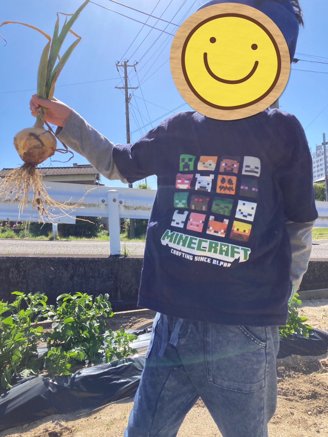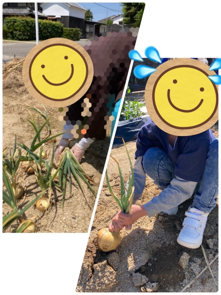 玉ねぎの成長に驚き、喜び、匂い、感触など全身で収穫を楽しんでくれていました。