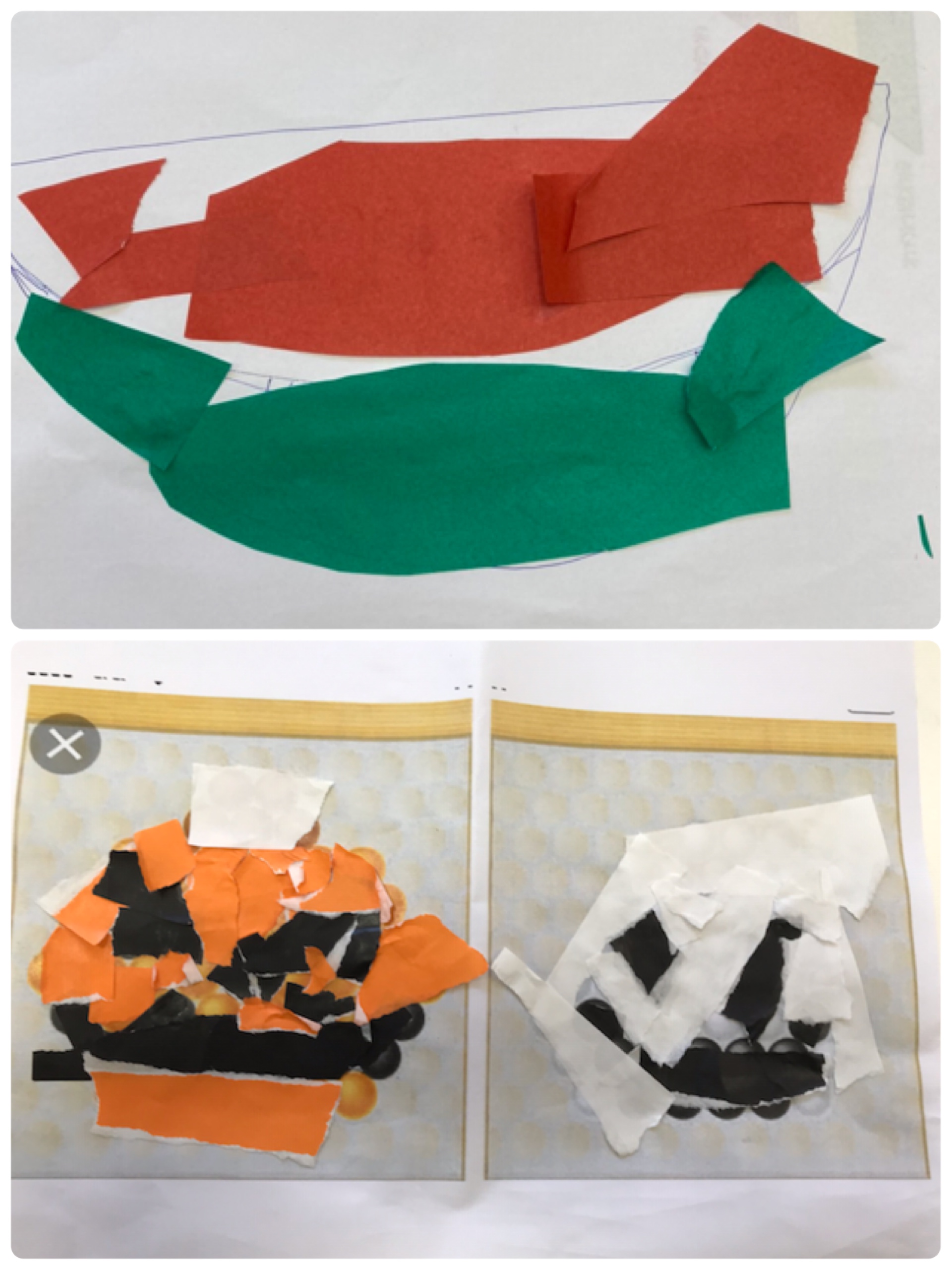 ちぎり絵 【今治北クラス】本日のできごと 2021.08.06 初めてしたちぎり絵は 上の写真のスイカ🍉です。 何度もちぎり絵を、しているうちに 紙を細かくちぎり 素敵なちぎり絵を作れるようになりました😆