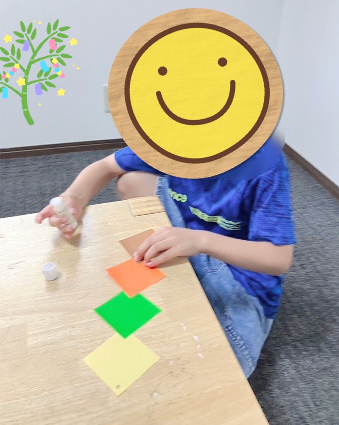 今回の集団活動ですが、もうすぐ七夕がありますので『七夕飾り』を作りました。
