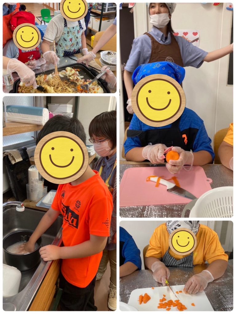 おにぎりは好きな具材を入れて焼きそばでは包丁で