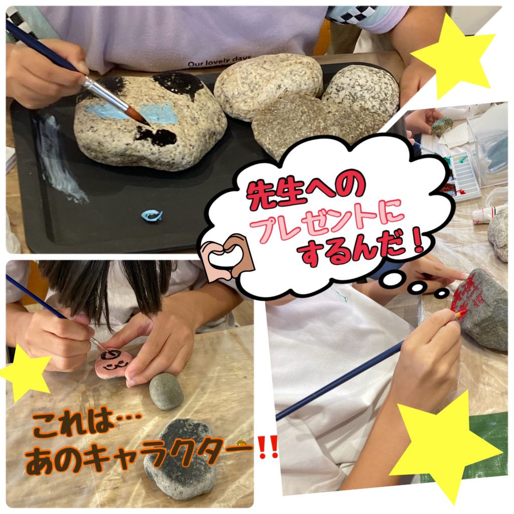 アクリル絵の具やラメ、ニスを使って自分で拾った石に世界で一つだけのアートを描き、夏休みの思い出として持ち帰ってもらいました🙌✨