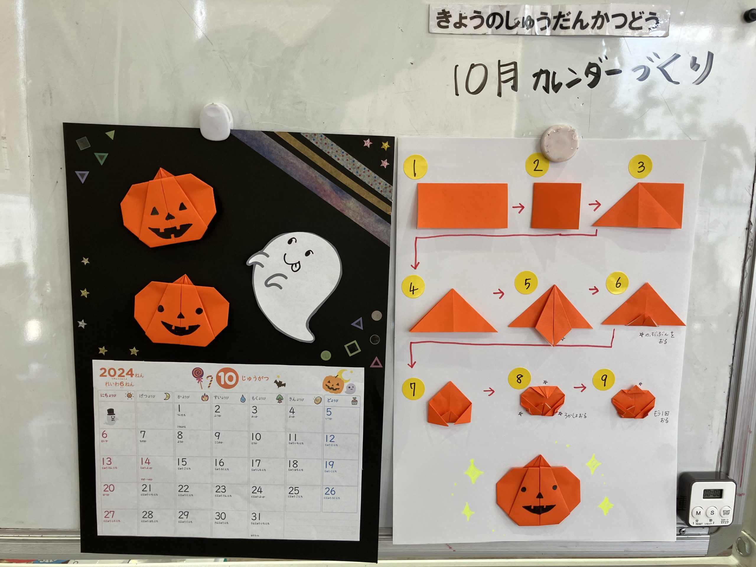 ⭐️カレンダーでは、ハロウィンの🎃を手順書を見ながらおりました。手順書があることでゆっくり集中して取り組むことができています。