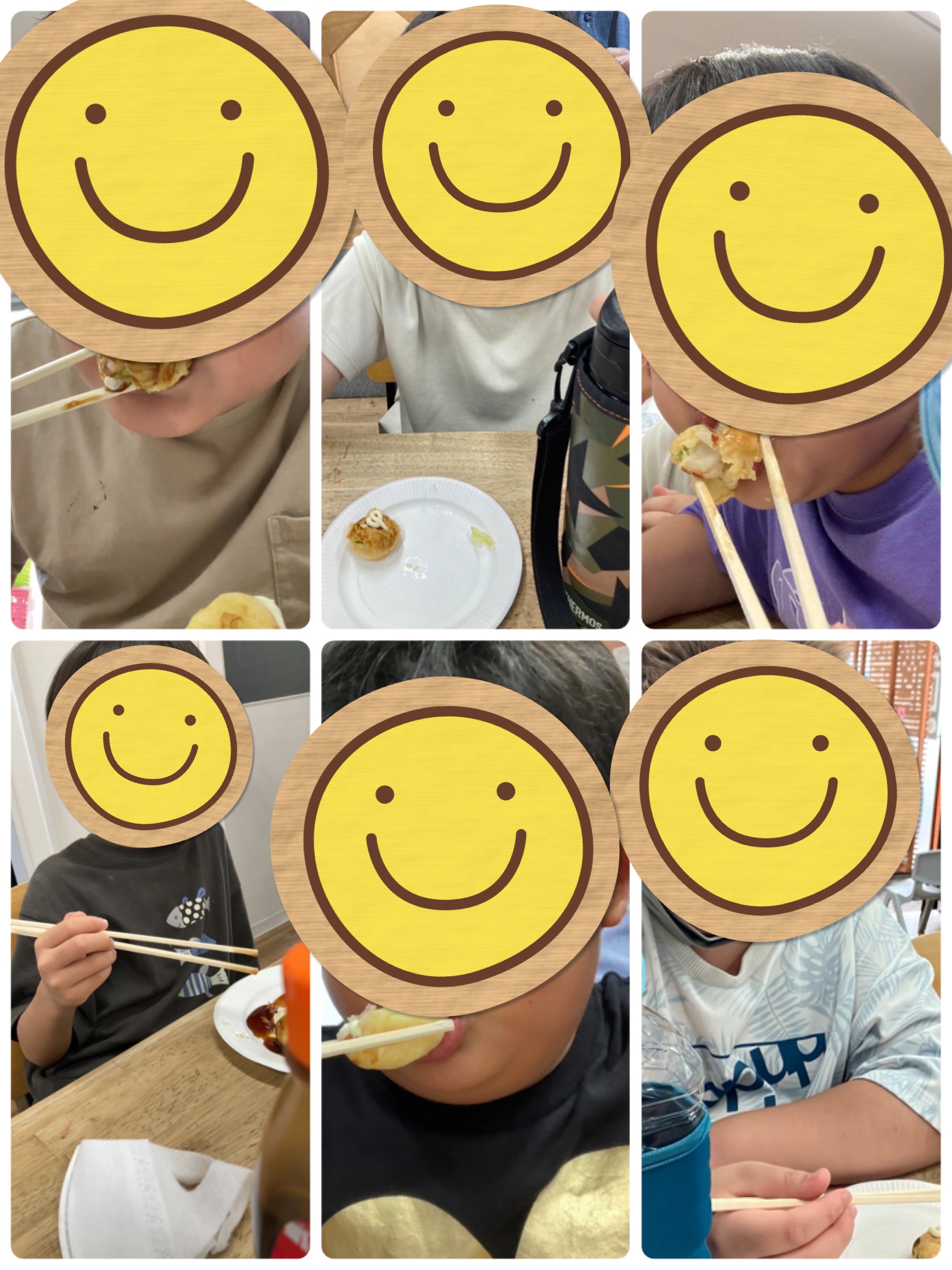 みんなもたこ焼きをひっくり返して、完成したたこ焼きを…「いただきます!」