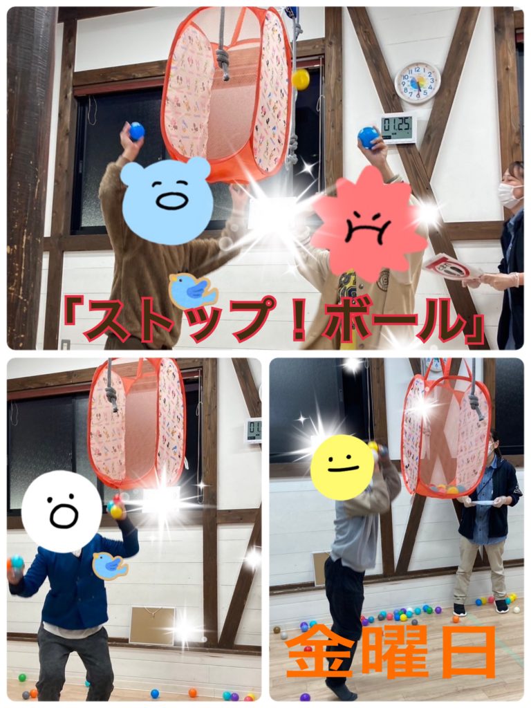 今週の集団活動は「ストップ!ボール入れ」を行いました。