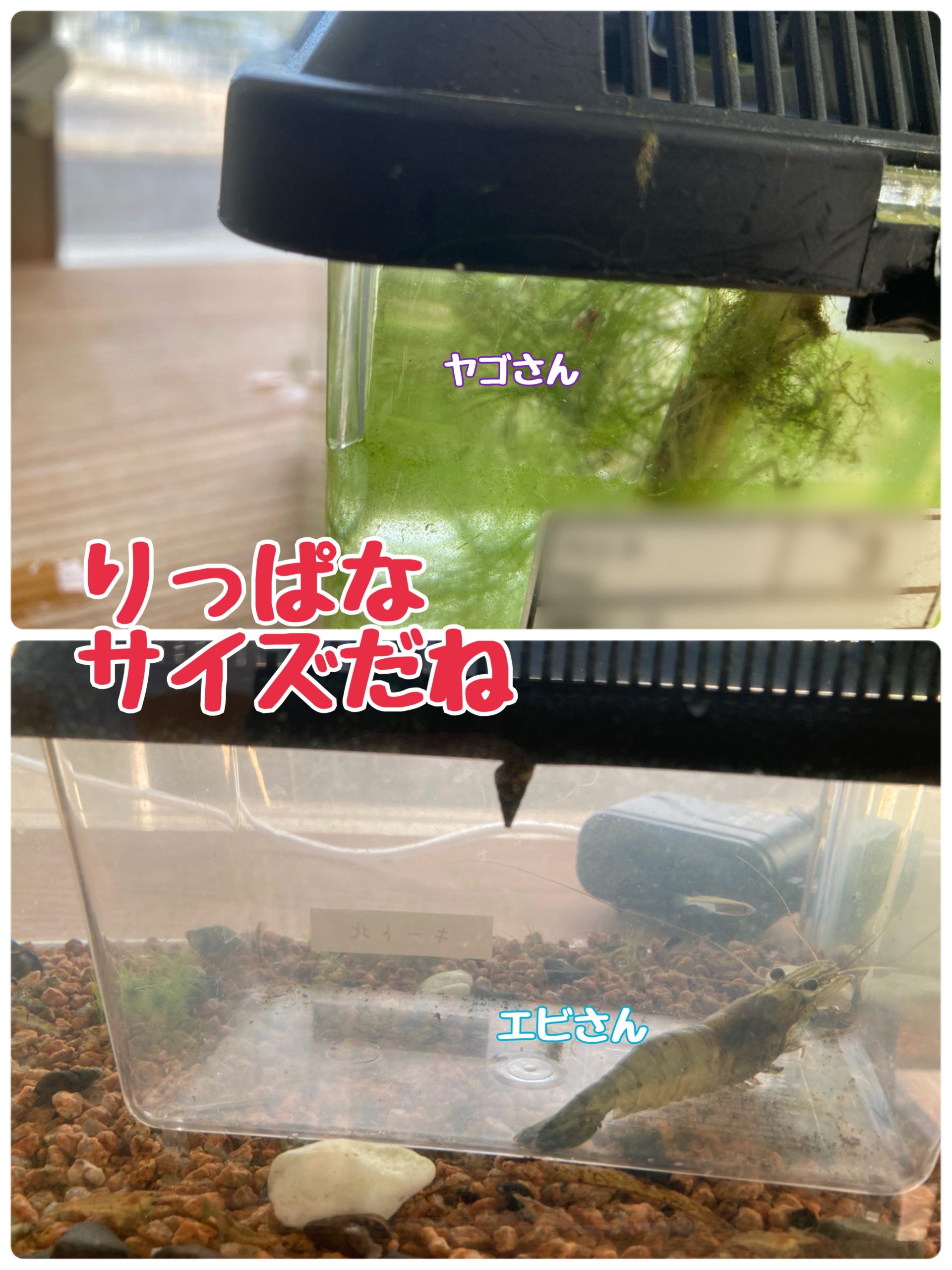 メダカのような魚は市販の餌でも良いようなのですが、カワエビで10センチ程度あるものやヤゴは何をあげたら良い分からず児童と一緒に調べています。ヤゴはある程度体の大きくなると動く生きた餌が良く、エビは小さいサイズのミミズが良いとの事でした。
