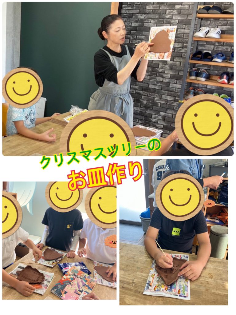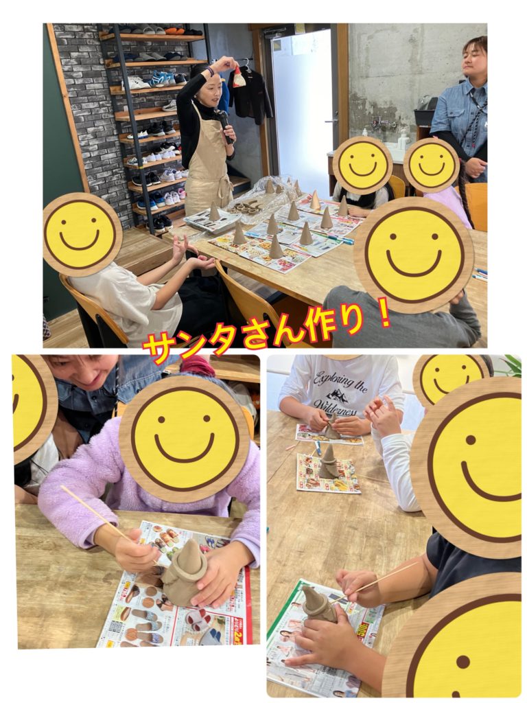 簡単にお皿、サンタ、ヘビが完成し、こども達は大満足で、先生が焼いてきてくださるのを楽しみにしていました。