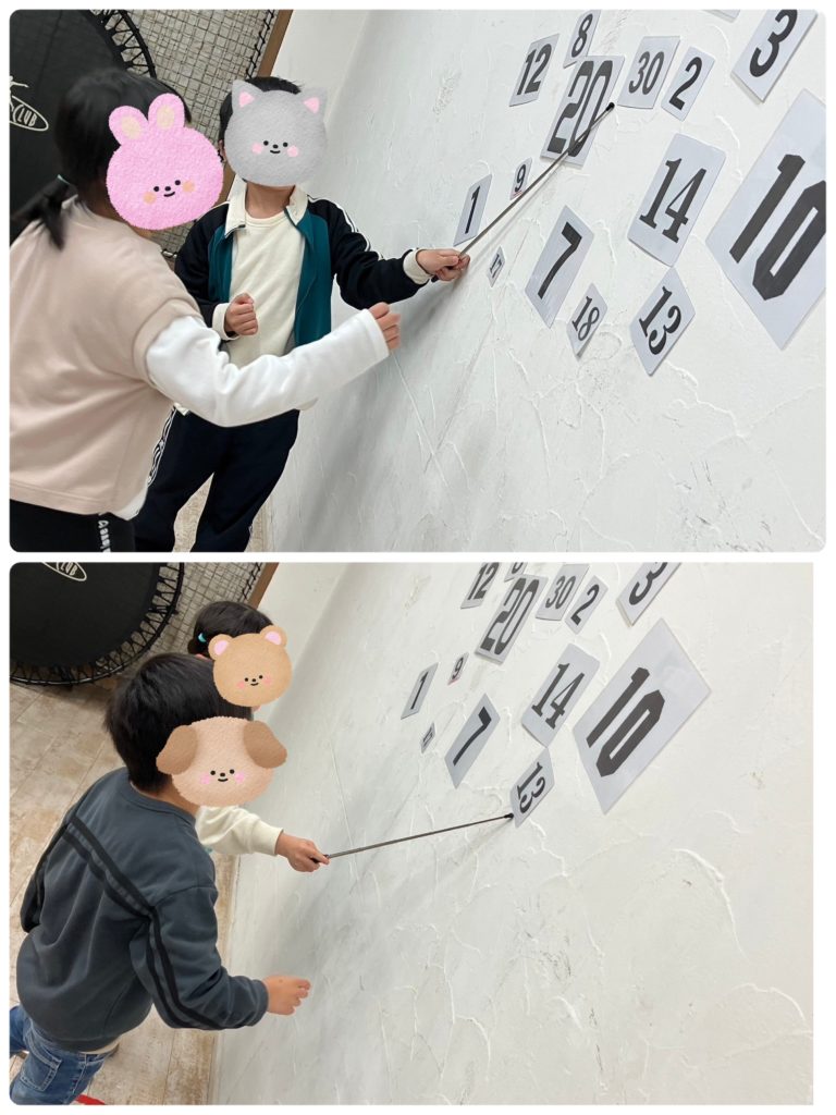 児童たちは壁に貼ってある数字を見て「何これ〜??」と興味津々👀