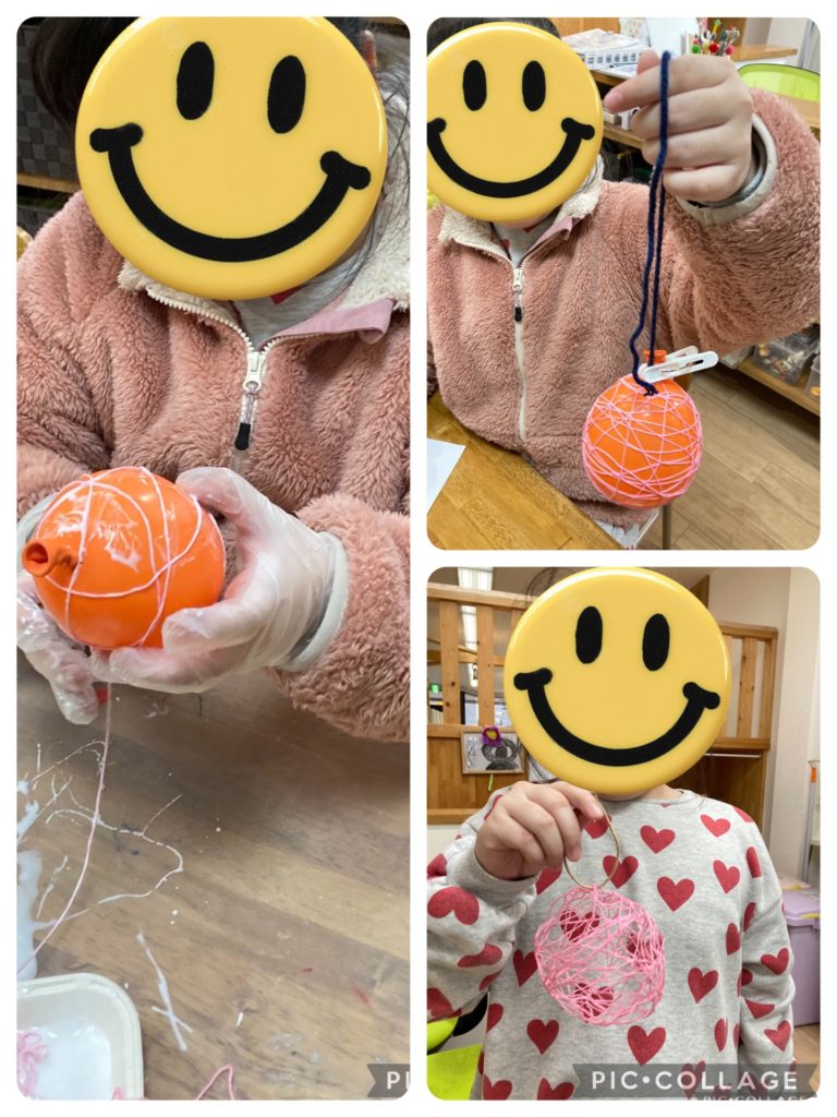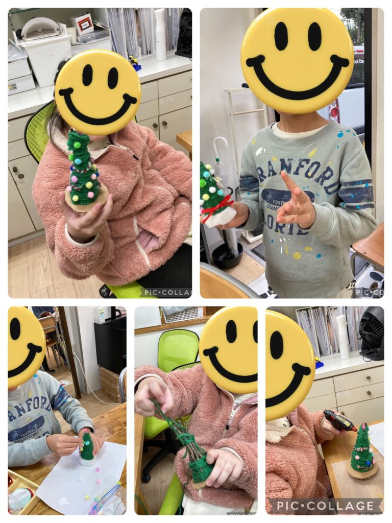 クリスマスイベントをみんなで楽しみました!ツリー作りでは枯れ木を土台にして毛糸を巻きつけて作っています!グルーガンを使ってデコレーションボールを付けたり、キラキラのモールやリボンを付けたりしてオリジナルリトルツリーの完成です!そして、クリスマスラタンボール作りにも挑戦しました!風船にボンドを使って紐を巻き付けていきます!ポイントは、同じ場所に巻き付け過ぎないように隙間がバランスよくできるよう、全体を見ながら巻いていきます!バランスよく巻いた後は、ボンドが乾けば完成!オシャレにできました!そしてクリスマスといえば、コスプレにクリスマスツリー!サンタもトナカイも来てくれました!みんなでクリスマスイベントのクイズゲームで盛り上がり、ケーキを食べて楽しい時間を過ごしました!