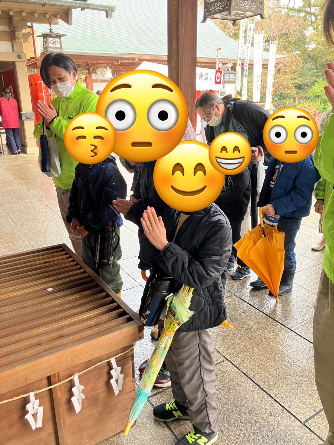 参拝やお賽銭などを経験しながら職員やお友達同士で行動しており、天気もなんとか持ち堪えてくれました!^ ^