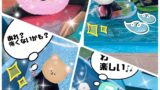 「①こどもたちはフラフープを両手で持ち、②職員が投げたボールをあらかじめフラフープに貼っていたビニール袋の中に入れる」というルールで行いました◎