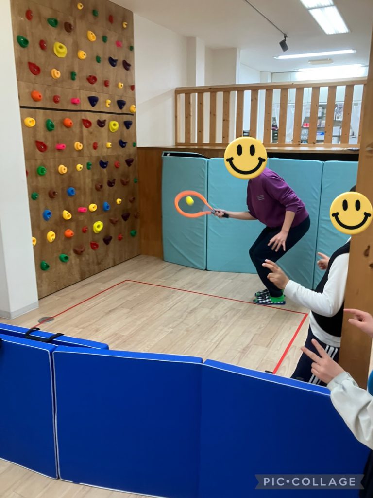 テニス大会をしました!今回はラインを付けて、イン、アウトの判定を明確にしてゲームを楽しみました!今回のルールではサーブはラインを踏まないよう、まずワンバウンドをしてから打ちます!審判の判定は受け入れる、サーブは1回、サーブのネットインはやり直し、3ゲームの2ゲーム先取でしました!最初はラインを意識できずに、サーブをする時にはラインを踏んでしまう時もありましたが、何度もゲームをしていると「あっ!踏んでた!」と意識をしながらゲームを進めることができています!またラインを作ることで力の加減やラケットの面の当て方の意識ができ、ゲームを進めるごとに調整が上手く出来ていました!最初は職員が審判、得点をつけていましたが、途中からは見学をしている児童が積極的に審判、得点を付けて進行できています!後半になると、見学をしている児童みんなが得点を付けたり、プレイをしているお友達を応援したりと、みんなが一体となってとても良い雰囲気で活動を楽しむことが出来ていました!