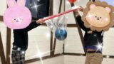 最初は、当てることを優先したのか、ボウリングのように下から転がしていましたが、何度も参加しているうちに、ドッジボールのように上から投げるようになっていました。