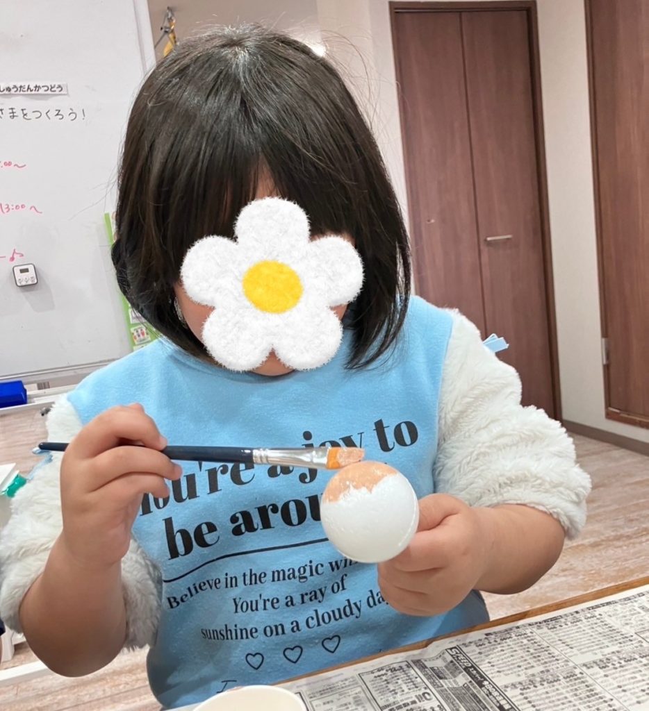 発泡スチロール球に絵の具をぬりぬり☺️